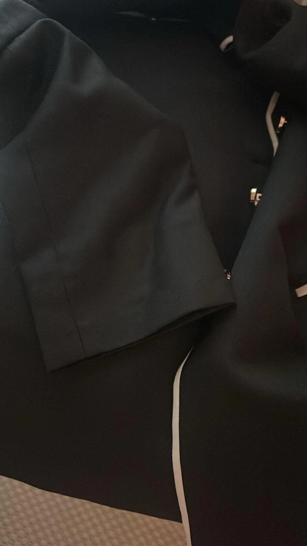 - Sleek black suit refined with its structured silhouette and modern details